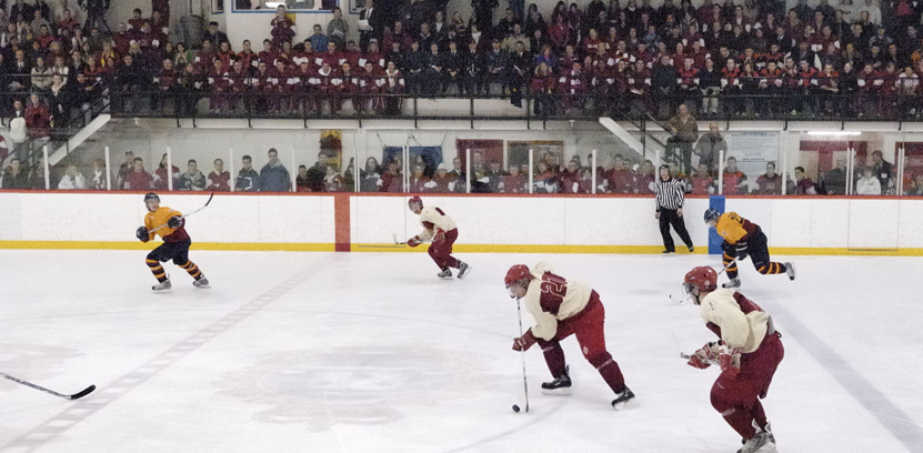 Constantine arena is a historic rink located on RMC's beautiful campus. While small in structure, the rink makes up for its size in character and atmosphere. When full, the arena is loud as the fans sit on top of the ice, above the glass so there is no filtering of noise.